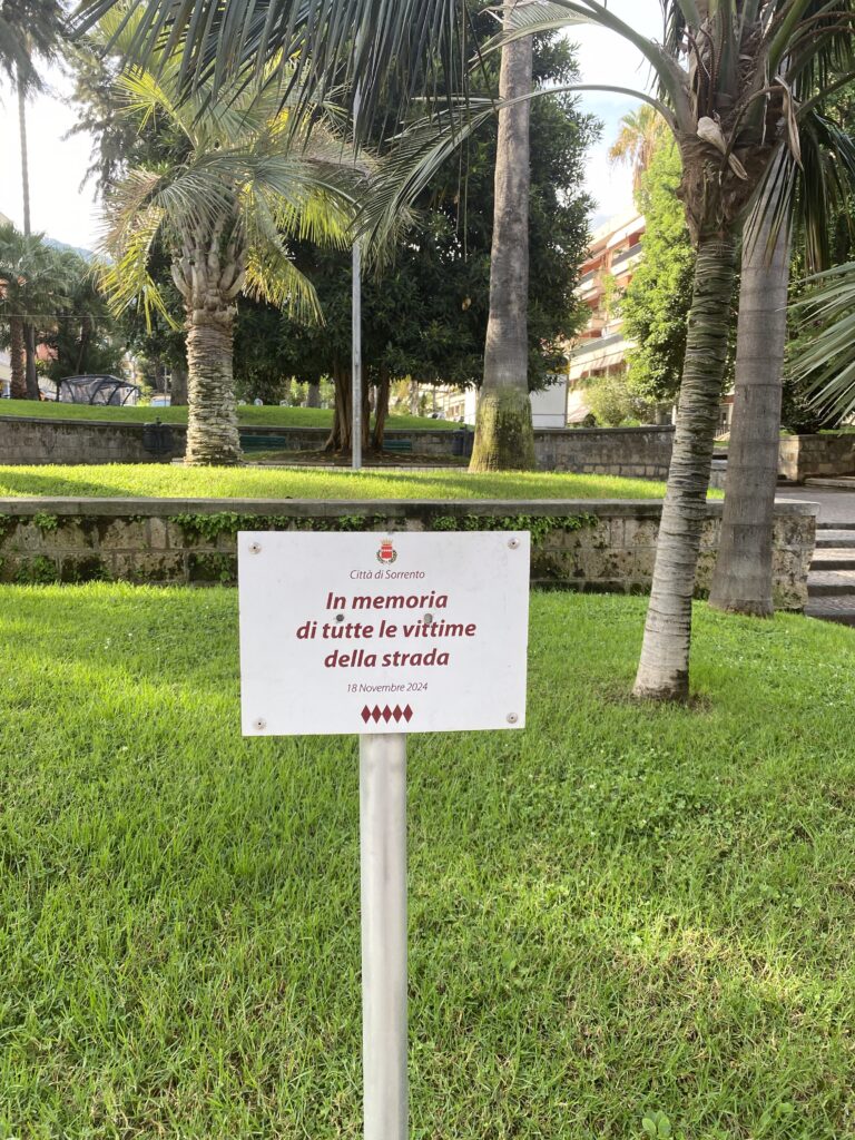 Puistossa oli pieni kyltti jonka valokuvasin. Se oli pystytetty tieliikenteen kaikkien uhrien muistoksi. Ja kun tulimme hotellille, onnettomuus oli siinä lähellä juuri tapahtunut. Carabinierit hääräsivät ja pian ambulanssi vei uhria tuutaten sairaalaan.