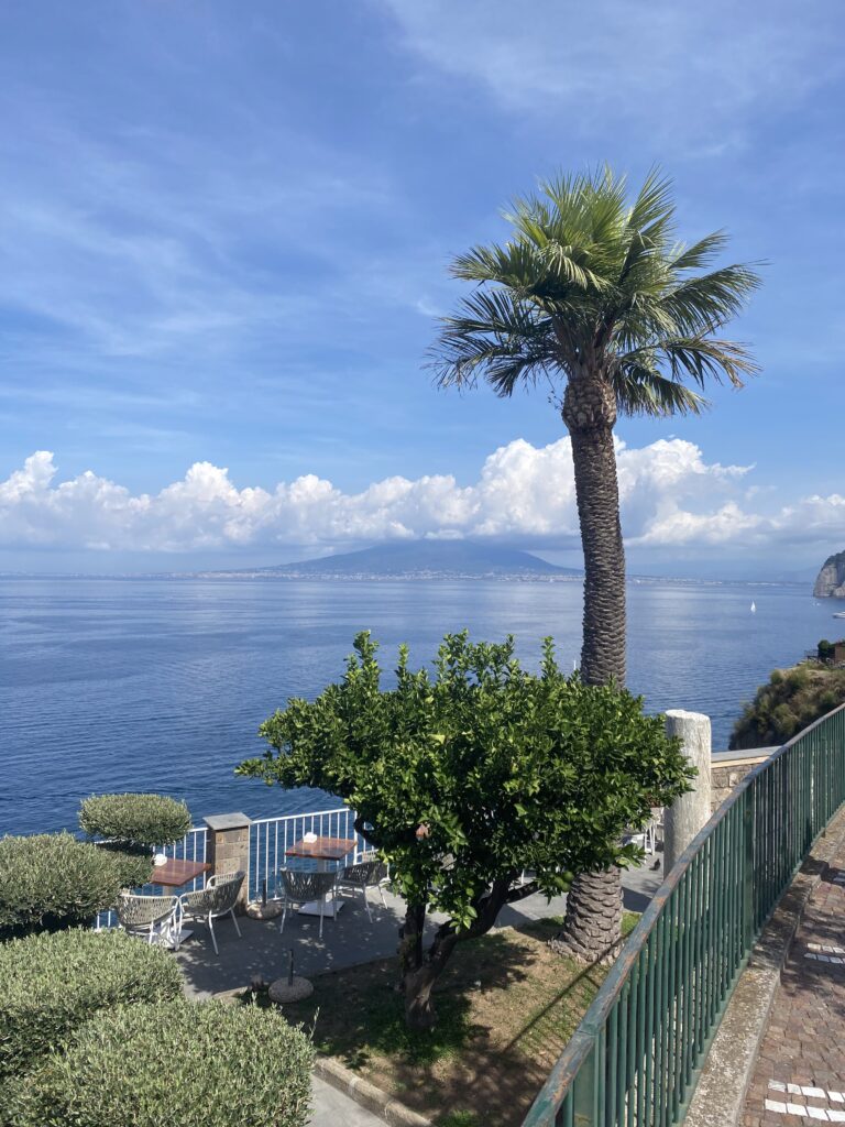 Katselen maisemaa, se menee minuun, Parosen sanoin. Lahdella on pari matkustajalaivaa. Niistä kansanjoukot aamulla kuljetettiin maihin ja järjestettiin sitten jonoiksi Sorrenton keskustaan kuin koululuokat. Kaikki tuo on samaa kuin Venetsiassa, mittakaava onneksi sentään pienempi.