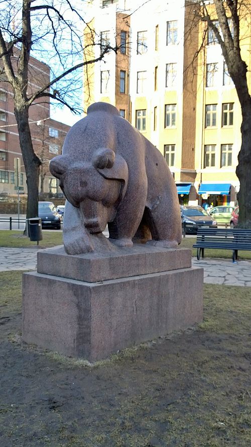 Asuntomme salin ikkunasta avautui mielessäni jo ikuinen näkymä ensin Kallion kirjaston puistikkoon (Kallion kirjasto täytti muuten eilen 113 vuotta ja Kallion kirkon vihkimisestä käyttöön on kulunut vuosia saman verran) ja sitten puistikosta varsinaiseen Karhupuistoon Jussi Mäntysen karhuineen.