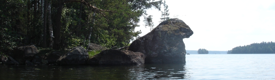 Kuvassa Leijona-kivi, joka näkyi saarellemme. Kaukana takana Everstin kalamaja ja sen voeressä Suolikon saarta.