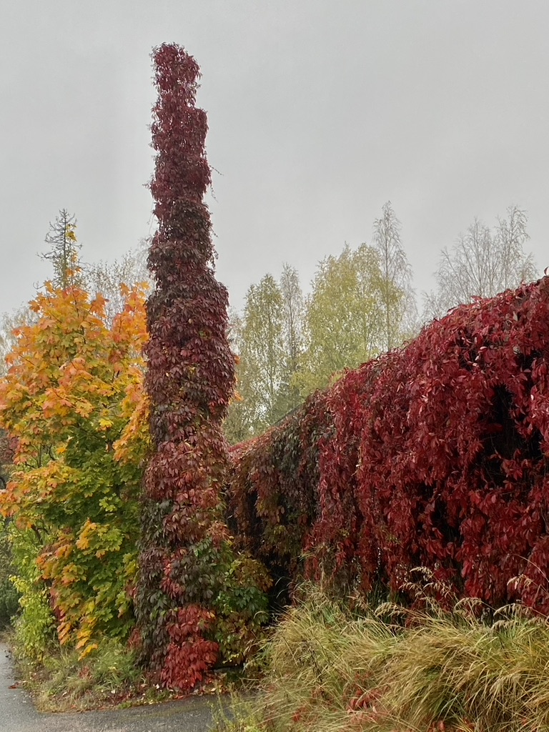 Villiviiniin voi myös luottaa jos ei tule pakkasia. Ventelässä odottaa joka syksy tällainenkin näky.