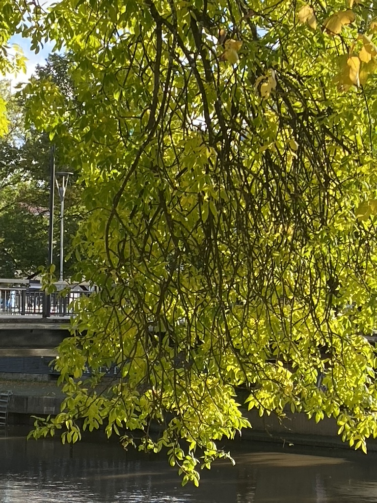 Saarni on yhä vihreänkeltainen, yksi ruskan ihmeistä, sillä kesällä sitä ei juuri huomaa muuan vihreän joukosta.