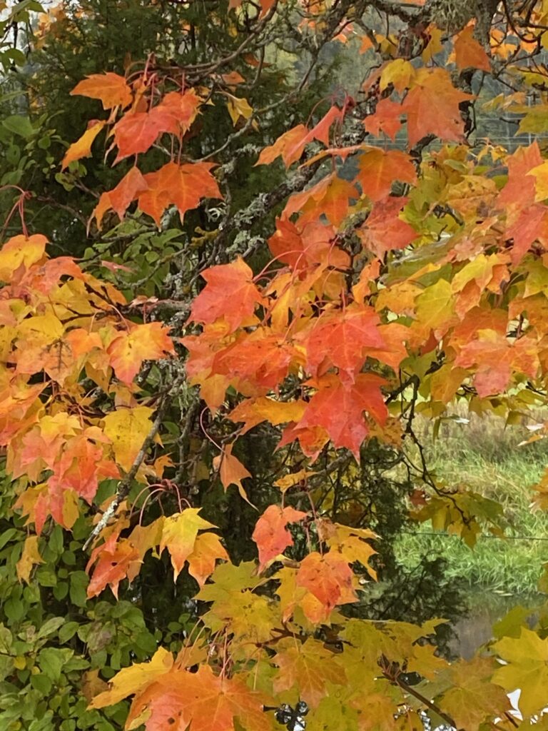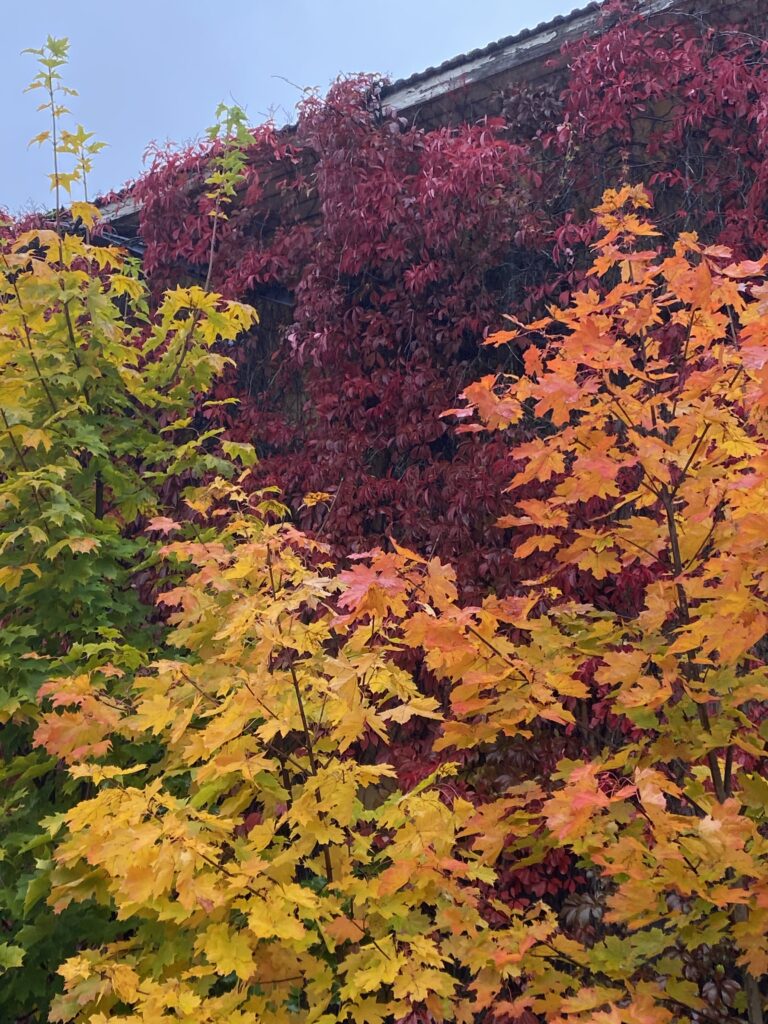 Vaahtera puolestaan punertuu ja parhaimmillaan on niin hellyttävän ja koskettavan näköinen, ettei voi muuta kuin pysähtyä, ihailla ja ottaa kuvia. Kuten joka ainoa vuosi. Silti teen sen aina.