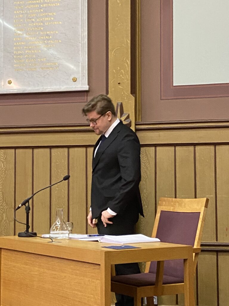 Väitös kulemma vielä tarkistetaan, mutta kyllä ennusmerkit olivat todella hyviä. Kustoksena toimi Kari Heimonen, joka kirjoitti paljon keskustekusta muistiin. Tässä on sitten mietteliäs hän.