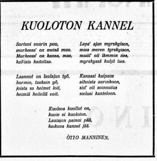 Eilen lauantaina 10.1. Eino Leinon kuolemasta tuli tosiaankin kuluneeksi täydet sata vuotta. Tyypillistä Suomen nykykulttuurille on se, ettei merkkipäivää juuri noteerattu: radiossa luettiin runoja, ja parissa nettilehdessä vilahti pieni viittaus. Siinä toden totta aivan kaikki.