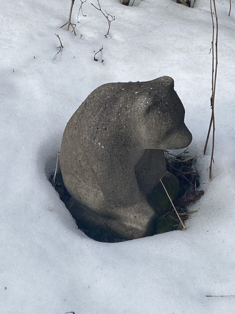 Näin voisi ajatella karhu, joka juuri on päässyt esiin lumiluolastaan talvihorroksen jälkeen. Hieman se näyttää synkältä. Ainakin apealta. Vaan kevät kohottanee senkin mielen?