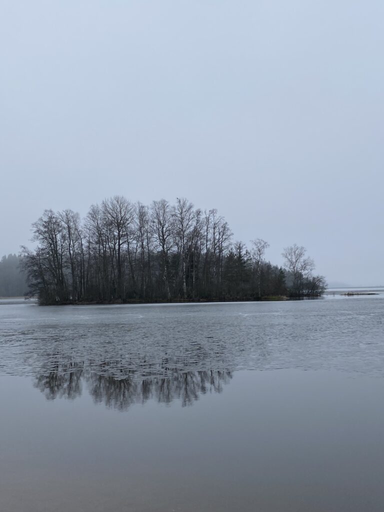 Tosia ovat kuvat. Yksinäinen rannan puu, sumuinen avara ulappa, saari joka osin heijastuu veteen, osin heijastus katoaa hyhmään. Kuva on kuin mielenmaisemani juuri nyt, silti täynnä toivoa ja uuden odotusta. Uuden, jonka tulevasta olomuodosta ei paraskaan profeetta osaa varmuudella sanoa mitään.