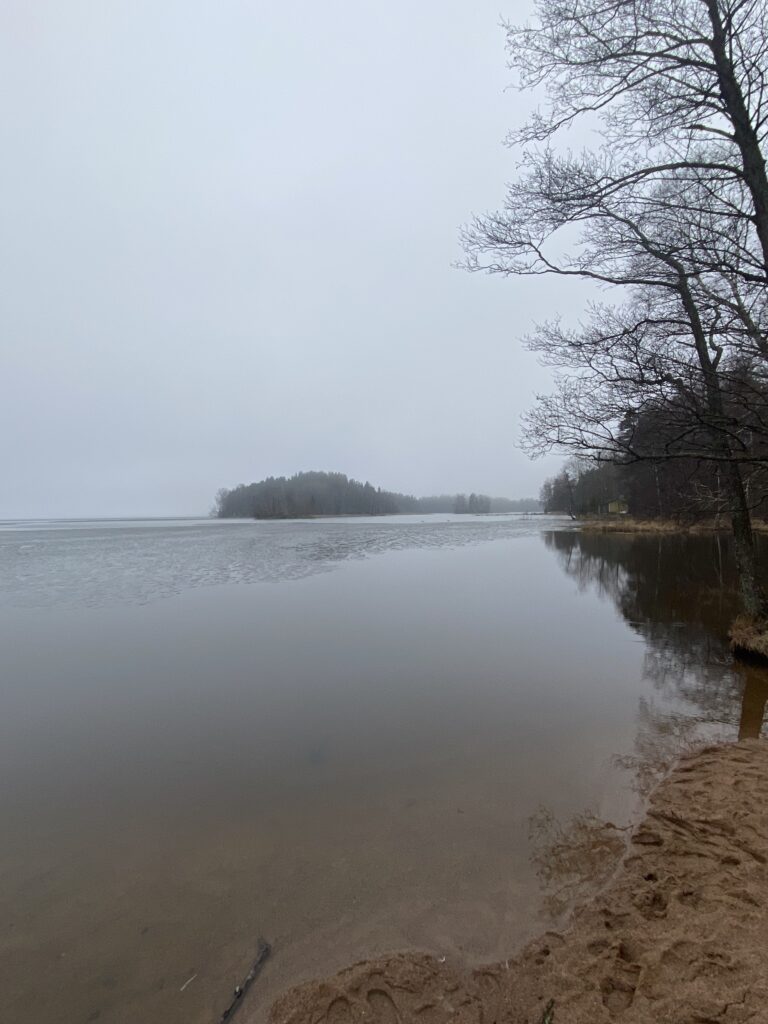 Vielä yksi kuva, viimeinen. Käyn myös Liessaaressa. Tyhjä hiljainen ranta, autio ulappa jolta sumu hälveni jo. Kiitos. Pian astelen jälleen autoa kohti ja ajan kotiin, nyt Lohen kautta, sillä jotain tarpeellista unohtui Lempolan kaupassakäynnillä. Ja sitten kotiin.