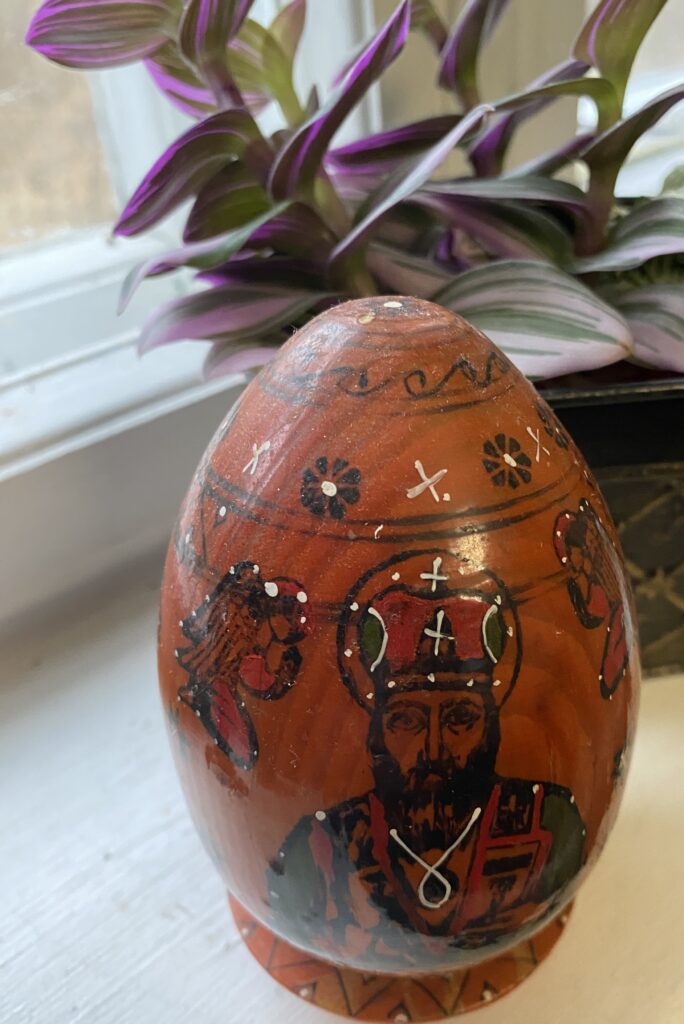 Pidän pääsiäisen kuvista, tauluista, ikoneista ja muista kuten munasymboleista, joita kotonakin on. Traditiot eivät aina ole pahasta, vaikkei sisältöön uskoisikaan.